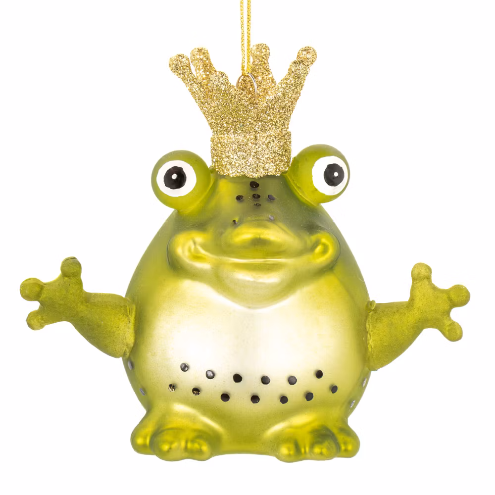 Härlig julkula formad som en groda med krona på huvudet. En klar grön favorit i julgranen!