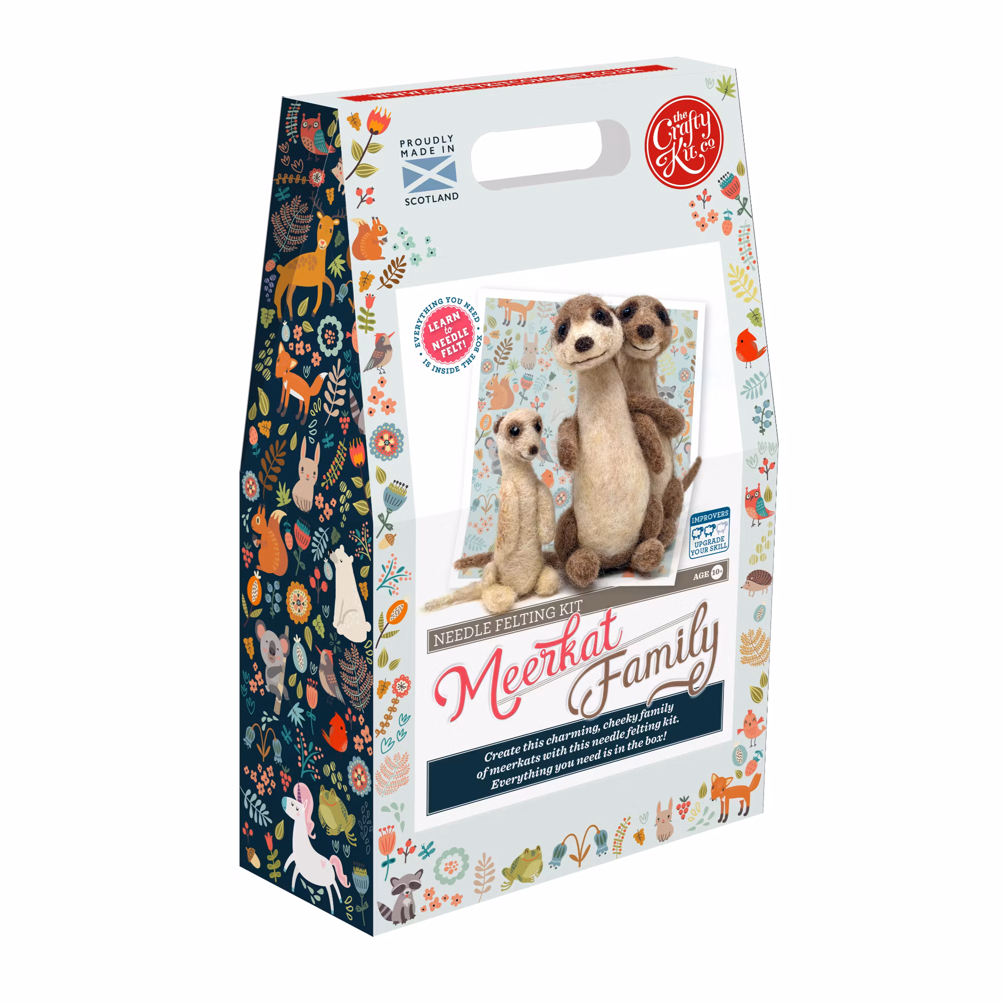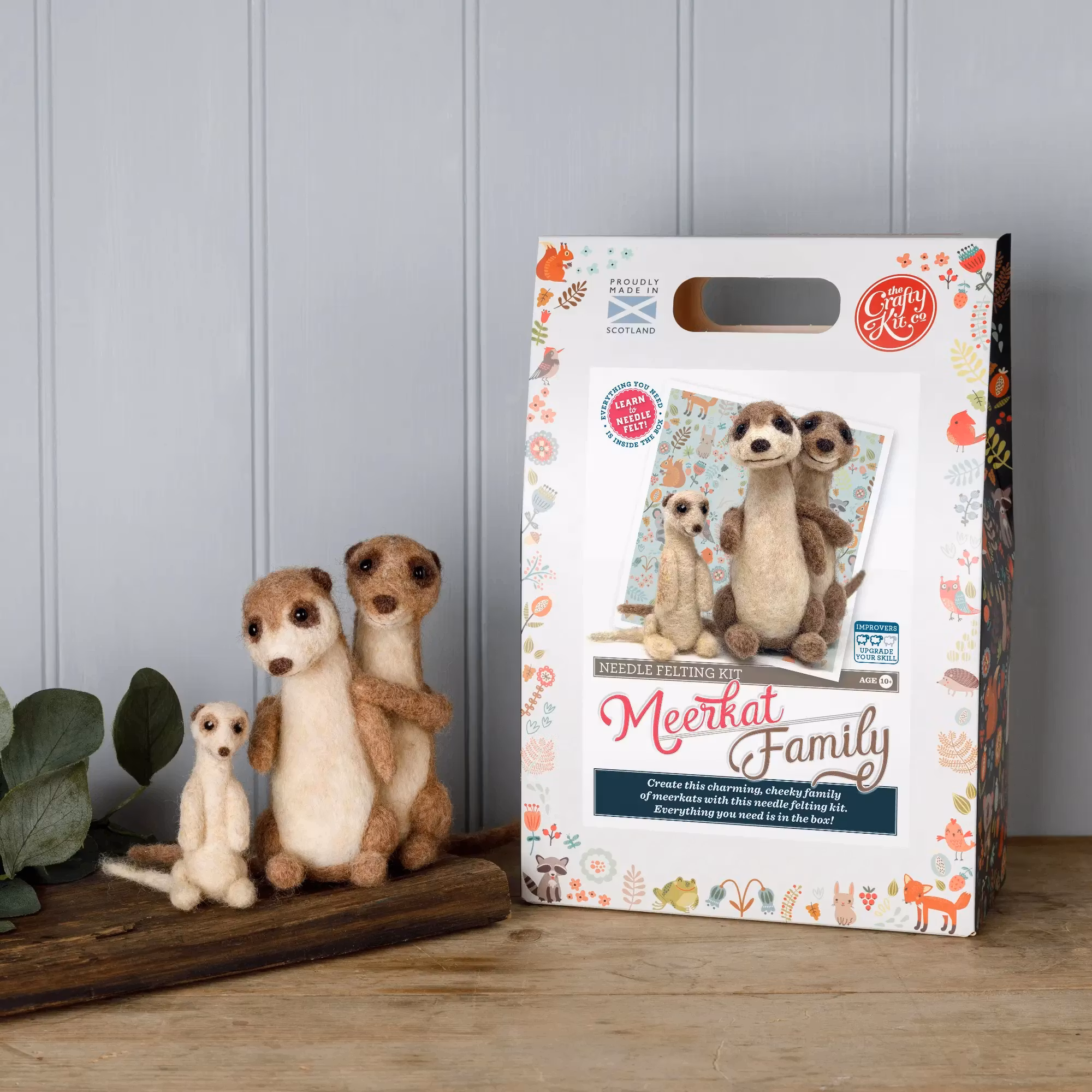 Gillar du att koppla av och pyssla? Då har du allt du behöver i det här kitet för att skapa den lilla surikatfamiljen som visas på bilden.