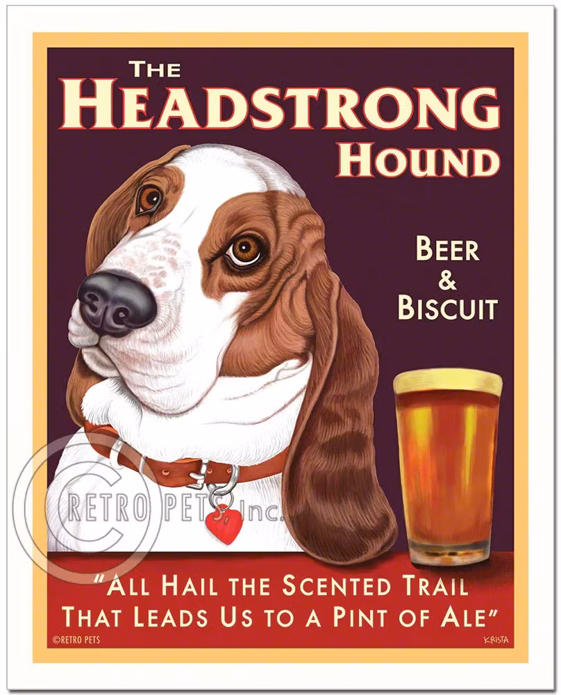 Konsttryck Krista Brooks, The Headstrong Hound – Basset hound, vit/brun enfärgad