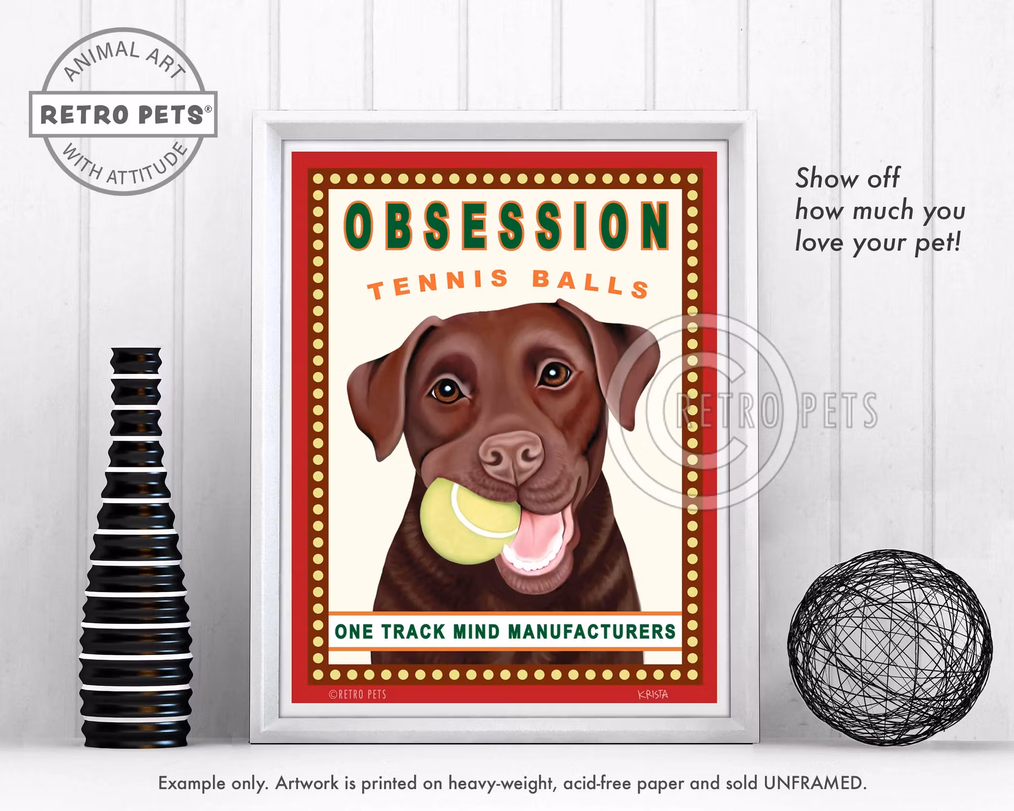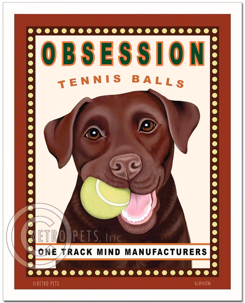 Konsttryck Krista Brooks, Obsession Tennis Balls – Labrador retriever, choklad