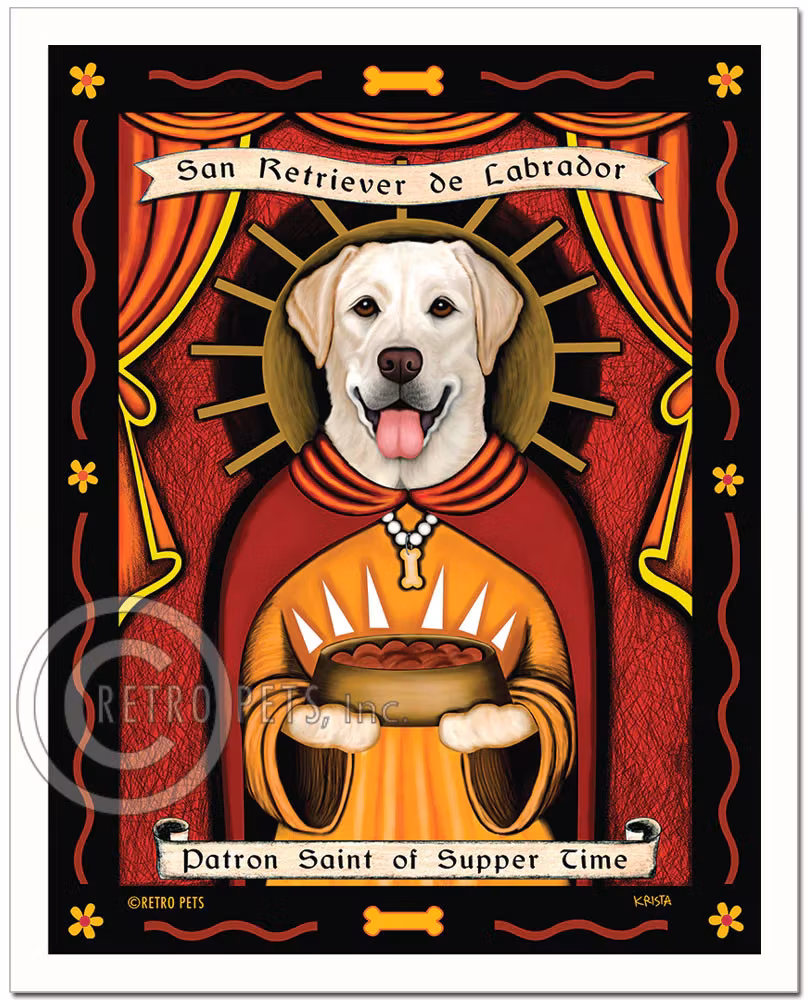 Konsttryck Krista Brooks, Patron Saint Of Supper Time – Labrador retriever, gul