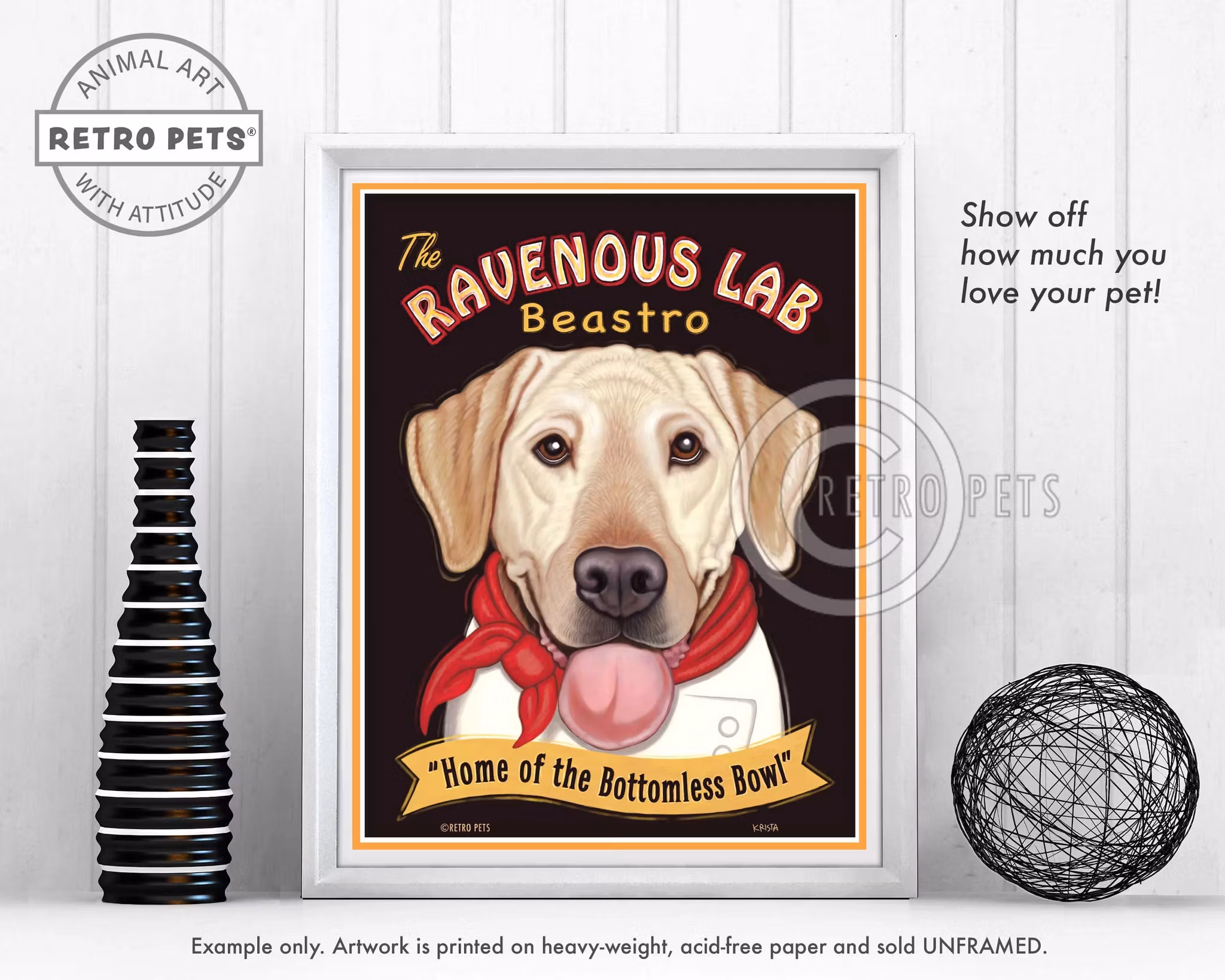Konsttryck Krista Brooks, Ravenous Lab – Labrador retriever, gul