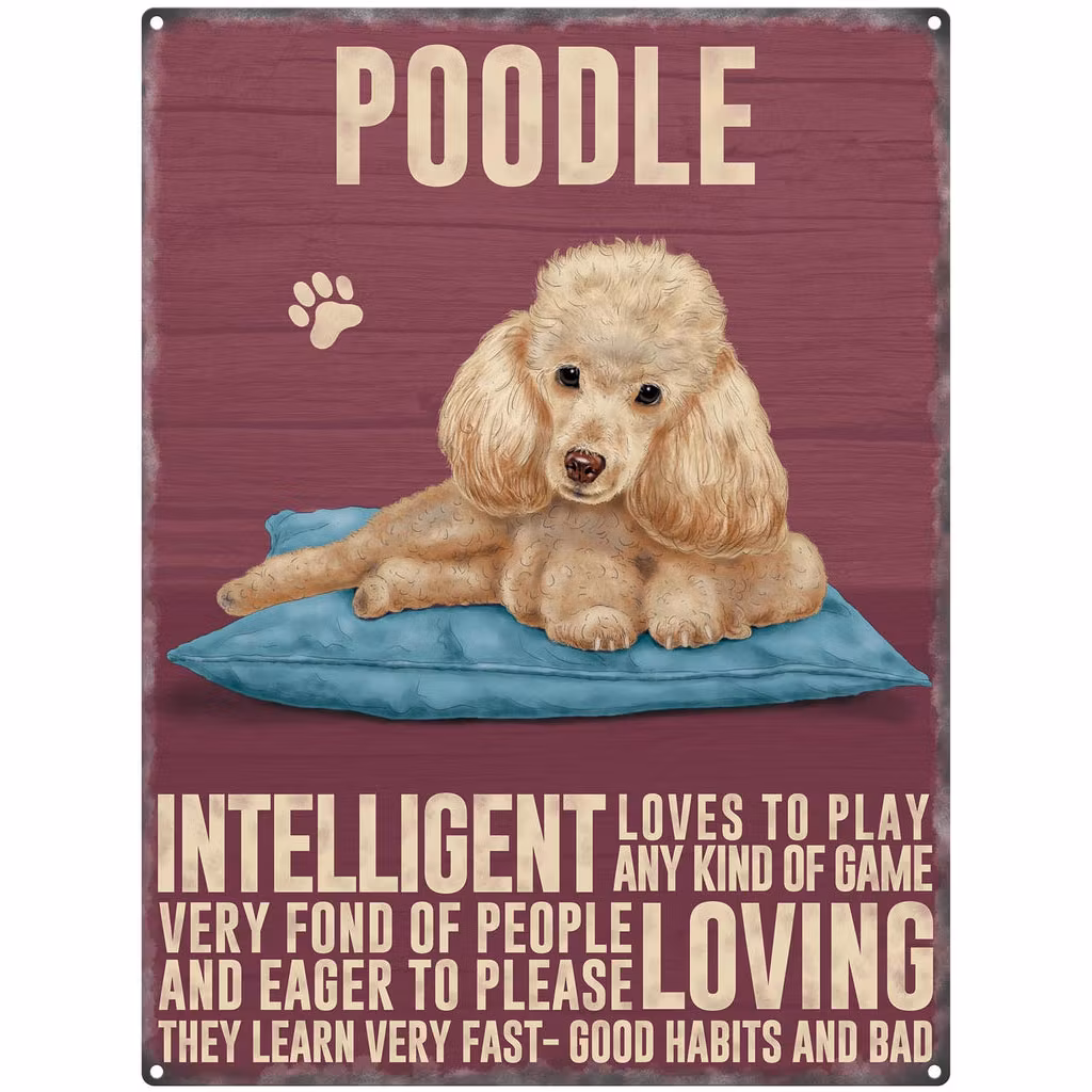 Liten metallskylt med din favoritras. Skylten har hål i de översta två hörnen (Inte i alla hörnen som bilden visar.) och har ett snöre fäst för upphängning.