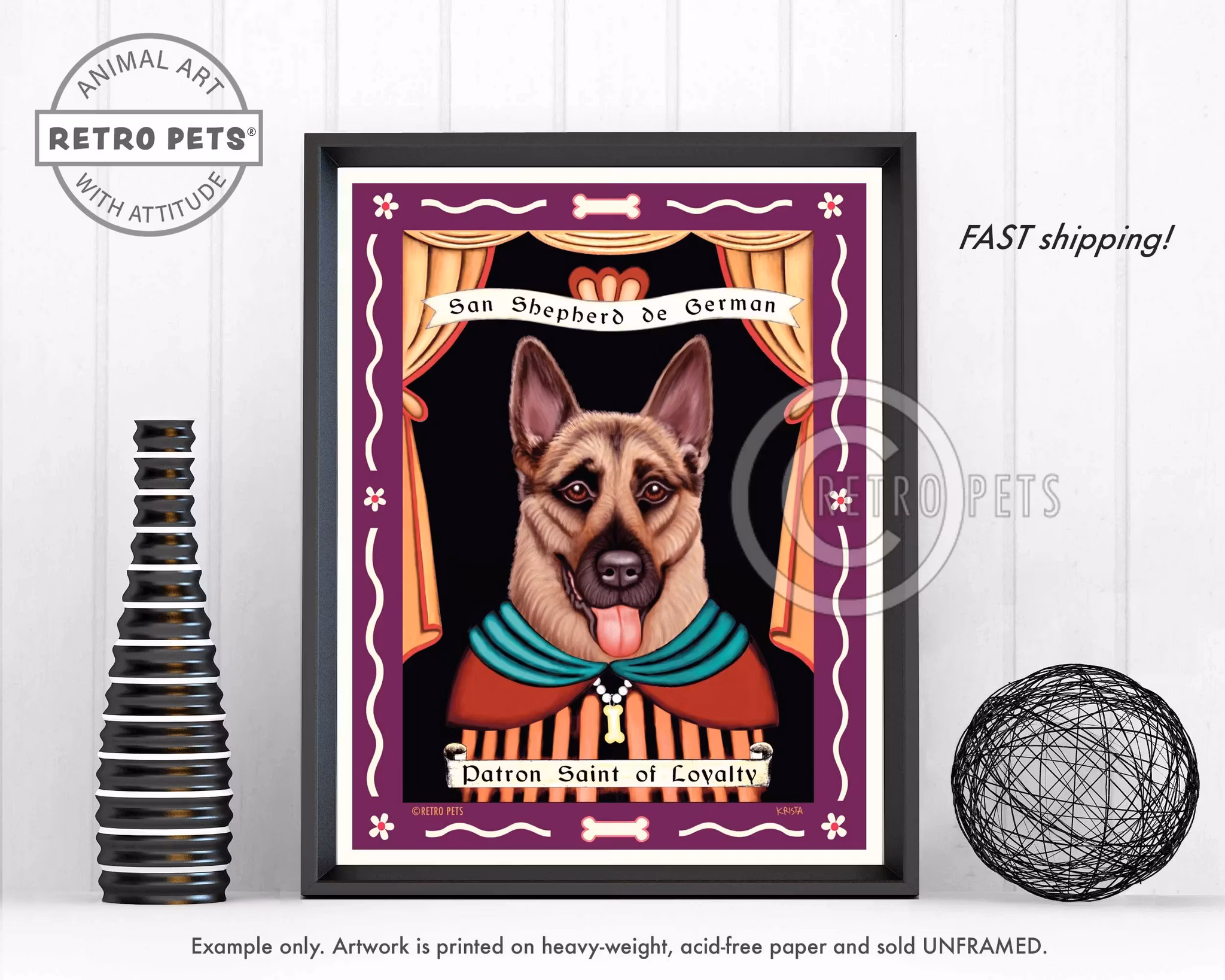 Exklusivt tryck från konstnären Krista Brooks. Levereras utan ram. (Vattenstämpeln © Retro Pets Inc. finns inte på trycket.)