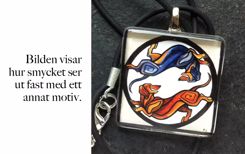 Konstverk fäst på glas tillverkat av den fantastiska konstnären Foxfeather R. Ženková från Minnesota. Hänget är uppträtt på ett svart kabelliknande snöre som fästs med hummerspänne.